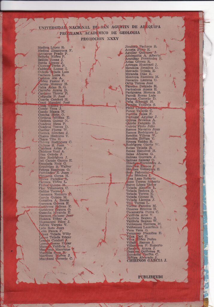 En el año de 1972 cuando estábamos cruzando los Estudios Generales, se realizaron unas Olimpiadas entre las diversas facultados que estábamos cruzando el segundo año y nuestra selección de Básquet llegó a la final y se tenía que enfrentar a la Facultad de Química que en ese entonces sus integrantes representaban casi en su totalidad al equipo de la UNSA que jugaba en la Liga de Primera División de Básquet de Arequipa. Con la barra integrada por muchos de nosotros y la arenga de “Dale G, Je, Jé” fue repetida por los que allí alentaban al equipo y al final se ganó ese campeonato.